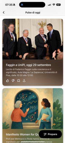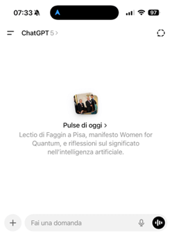 A poco più di una settimana dall’annuncio e da quando ho ricevuto Pulse sul mio account ChatGPT penso di poter raccontare le prime impressioni di questa funzione, per ora solo a disposizione del livello pro della sottoscrizione e solo nella app mobile (iOS e Android).