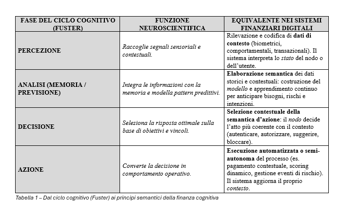 Ciò implica la capacità di un’entità (nodo) di adattarsi e apprendere dal contesto, reagendo sulla base di conoscenze predefinite. La Tabella 1 sintetizza questa analogia, traducendo le fasi del ciclo cognitivo nei loro equivalenti semantici e funzionali all’interno dei sistemi finanziari digitali.