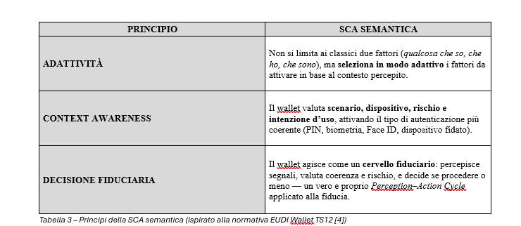 Questo modello consente di collegare l’atto di autenticazione al contesto e al rischio della transazione, aprendo la strada a una SCA più contestuale, adattiva e semantica, coerente con l’evoluzione dei wallet cognitivi.