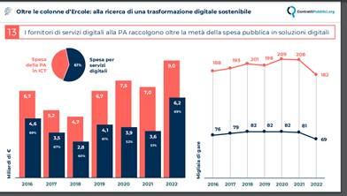 - La spesa in ICT aumenta meno di quanto aumenta la spesa in servizi. Ma è la spesa in ICT che “cambia” alla radice il modo di funzionare della PA.