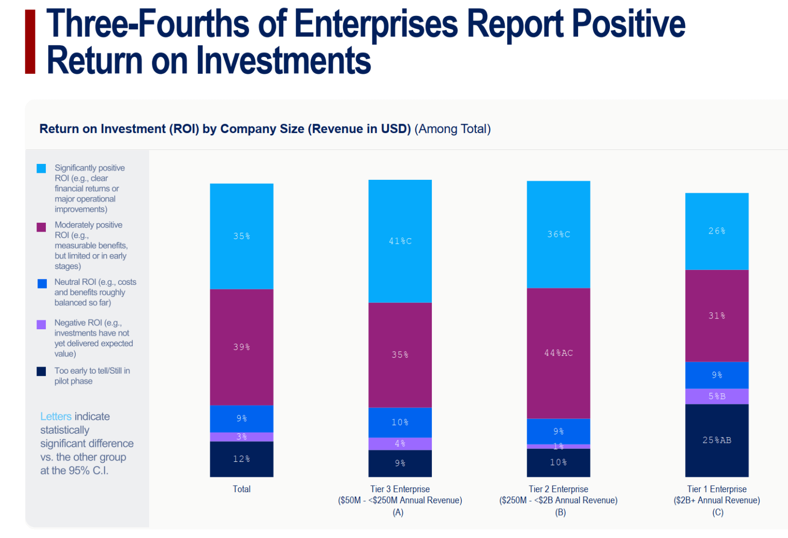 La ricerca Wharton–GBK 2025 fotografa quindi un salto di scala: l’82% dei leader aziendali usa strumenti di AI generativa almeno una volta a settimana, e il 46% ogni giorno. Il 72% misura formalmente il ritorno sull’investimento, tre su quattro dichiarano risultati positivi.