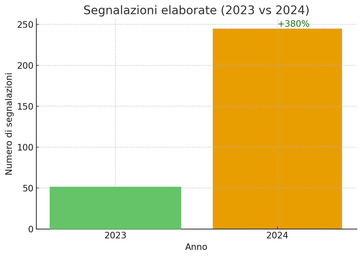 Il fenomeno è in crescita. L’IWF riporta che, in totale, gli analisti hanno elaborato 245 segnalazioni nel 2024 indicando contenuti con immagini AI gen di abusi sessuali su minori, a segnare un 380 per cento rispetto alle 51 segnalazioni del 2023.