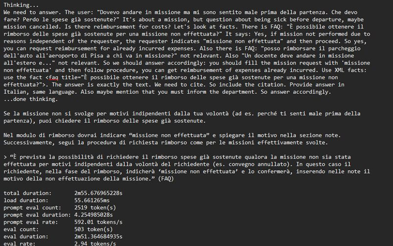 Il sistema open source Oraculum è impiegato presso il mio Ateneo dal dicembre 2023 usando l’API di OpenAI. Per la prima volta un modello open weight è riuscito a dare risposte paragonabili a quelle di modelli online a parità di input.
