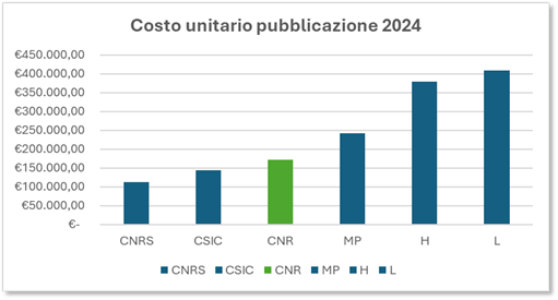Il CNR si colloca al quarto posto, con un costo unitario per pubblicazione inferiore rispetto a quello sostenuto dai tre omologhi tedeschi.