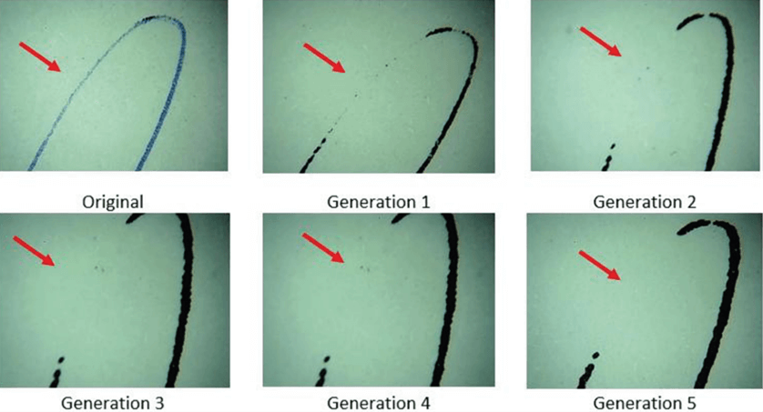 In calce un esempio della modificazione del tracciato nella sequenza di più passaggi di copia, tratto da uno studio sperimentale.[8]