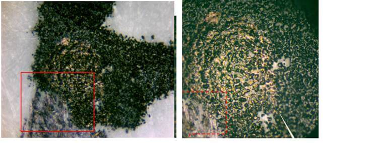 “In prossimità del punto di intersezione, si nota: il tratto a penna appare omogeneo, continuo e scorrevole, senza interruzioni evidenti in corrispondenza della stampa. La linea verticale nera del tratto a penna attraversa una parte del testo stampato. Il bordo destro della lettera presenta una leggera alterazione ottica, come se fosse sovrapposta da un deposito inchiostrato. Il tratto non mostra interruzioni o “slittamenti” tipici del passaggio sopra al toner. Il bordo del toner appare lievemente mascherato dal tratto inchiostrato. Questa è una forte indicazione che il tratto di penna sia stato tracciato dopo la stampa del testo”.