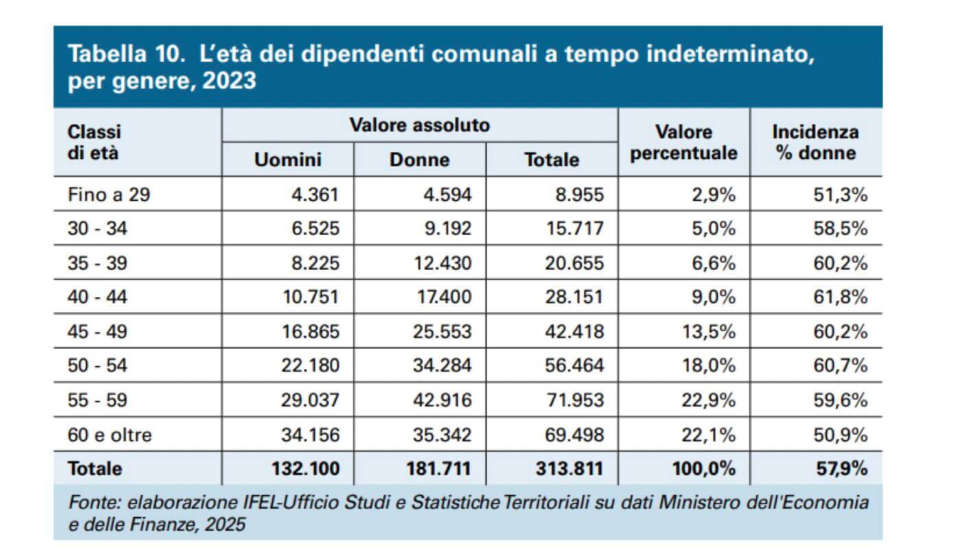 Fonte: Il personale dei comuni italiani – Edizione 2025 – IFEL
