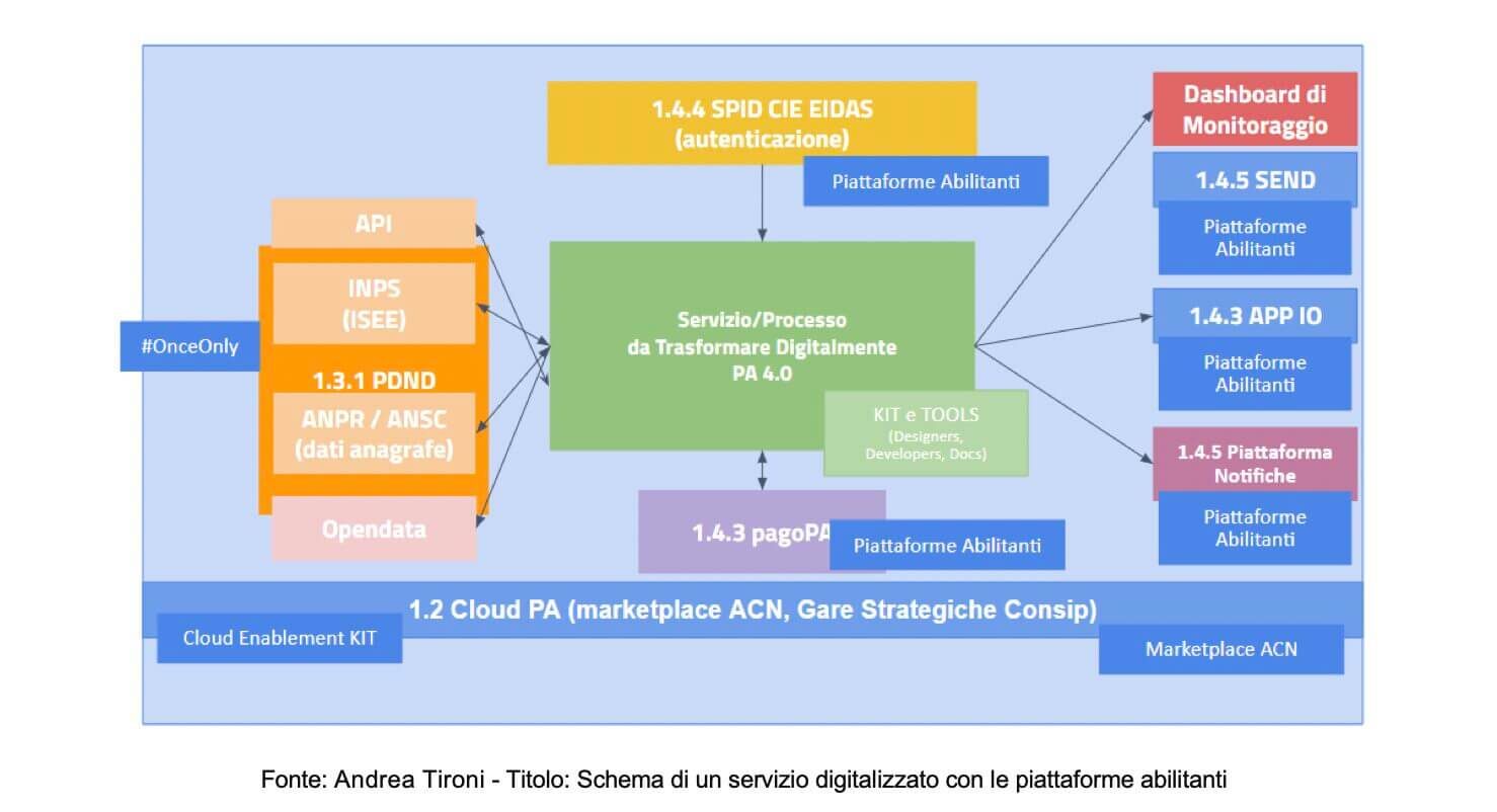 Fonte: Andrea Tironi – Titolo: Schema di un servizio digitalizzato con le piattaforme abilitanti