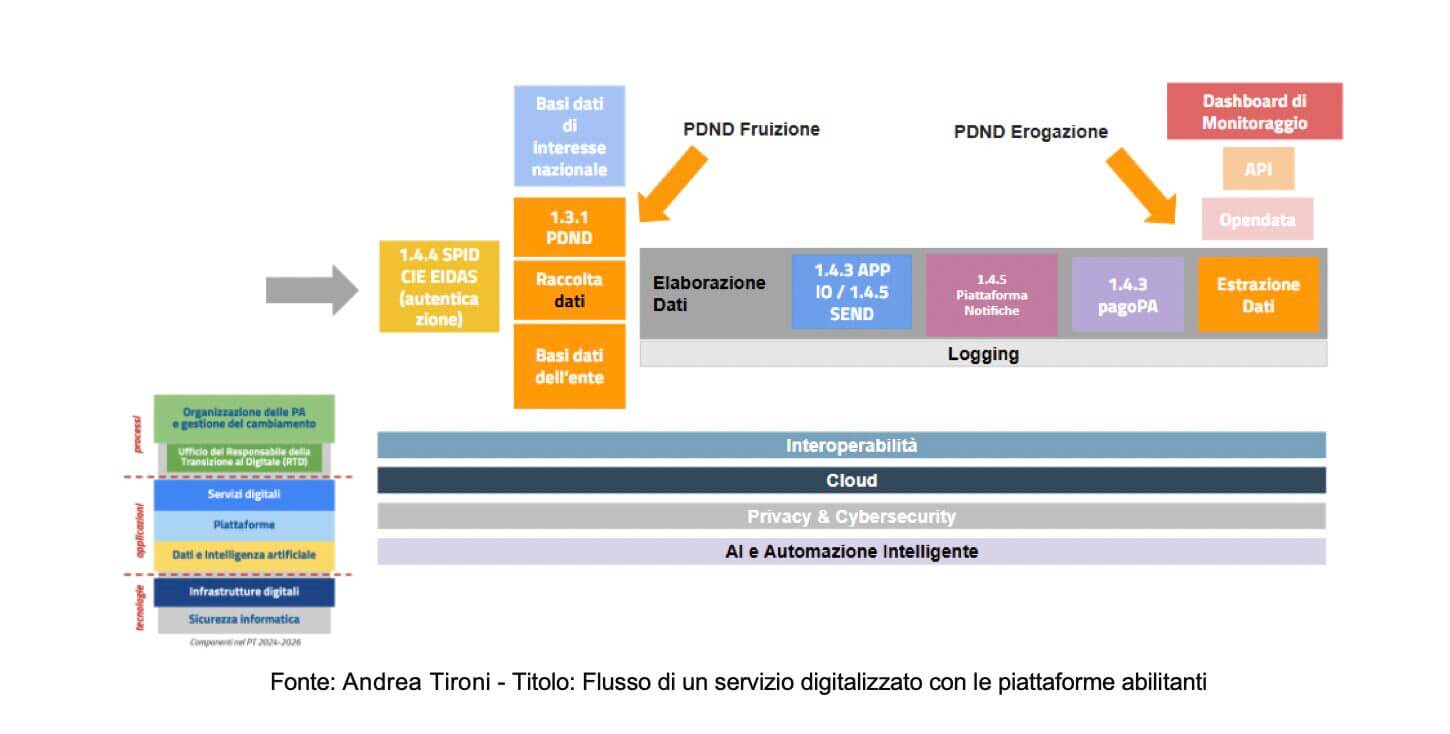 Fonte: Andrea Tironi – Titolo: Flusso di un servizio digitalizzato con le piattaforme abilitanti
