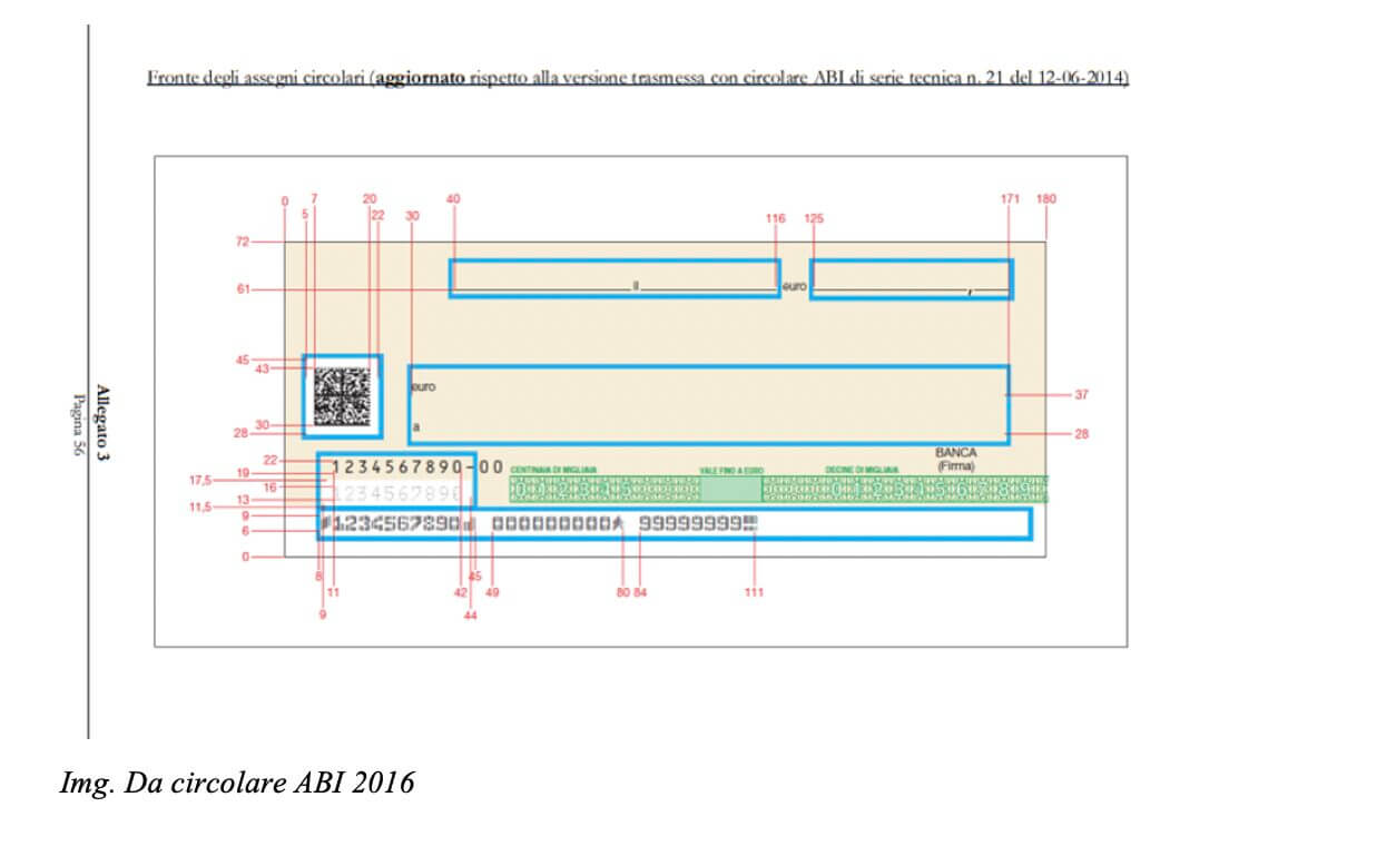 L’Associazione Bancaria Italiana (ABI) ha elaborato prototipi uniformi per assegni bancari e circolari, stabilendo dimensioni, layout, diciture obbligatorie e simboli da utilizzare. Il rispetto di questi standard formali è essenziale per garantire la riconoscibilità del titolo e per agevolare i controlli da parte degli operatori di banca.