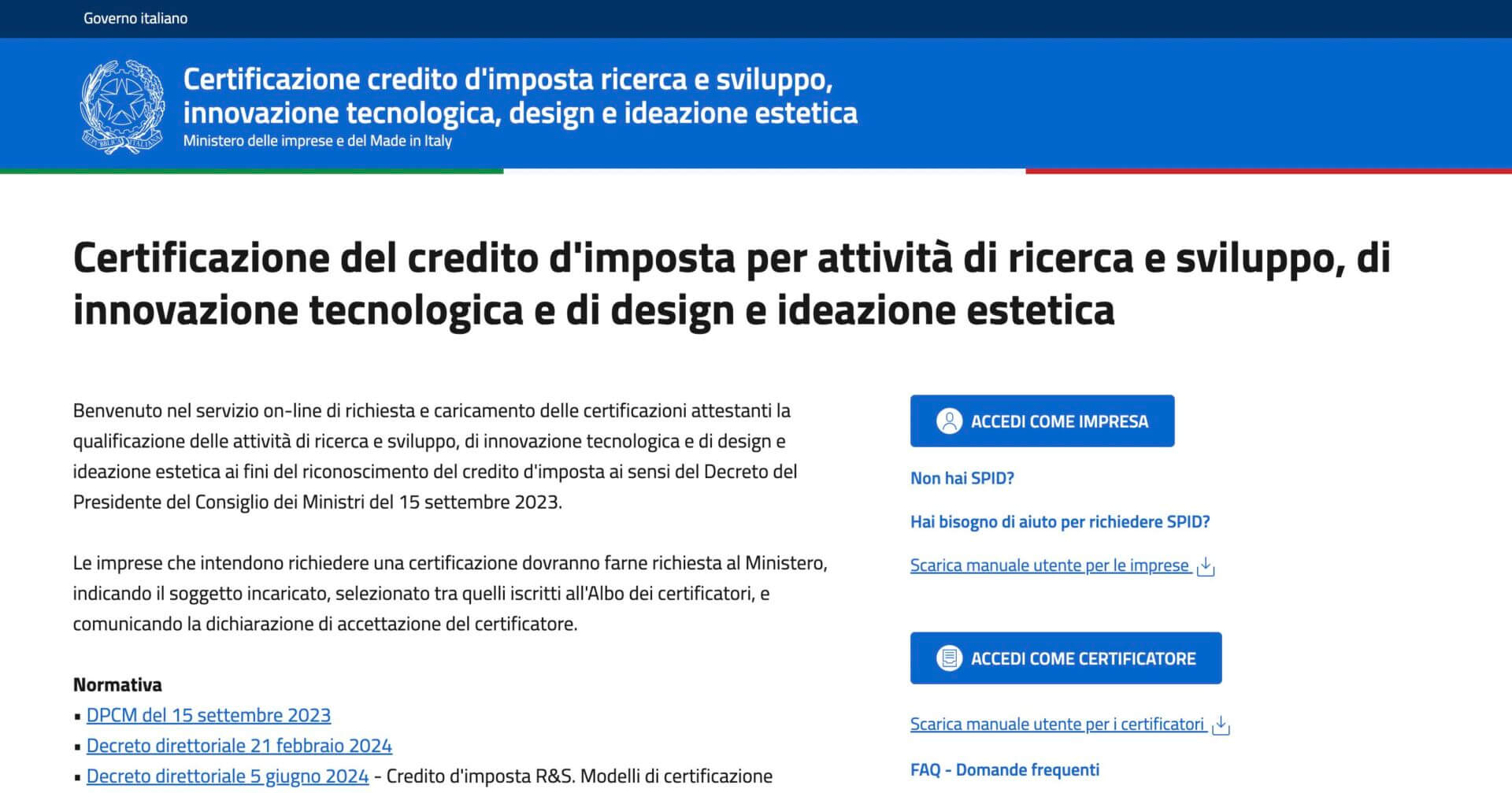 - Accedi al portale MIMIT: https://certificazionicreditors.mimit.gov.it