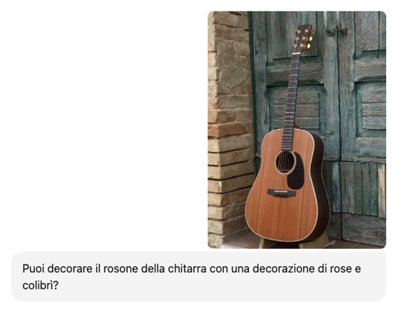 Uno degli aspetti evidenziati da OpenAI è la capacità del modello di modificare immagini esistenti senza stravolgerle, cosa che in precedenza accadeva più spesso. Provando la funzione con la foto di una chitarra, il miglioramento è evidente: diventa davvero possibile intervenire su dettagli specifici rispettando l’immagine originale.