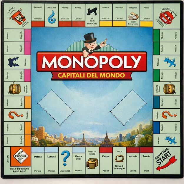 Per esempio, con il prompt “Genera la board del Monopoly ma usa i nomi delle capitali del mondo per i vari posti” si ottiene una board che soddisfa la richiesta, anche se molte delle scritte tipiche del campo di Monopoly risultano solo accennate e non sono riportate correttamente.