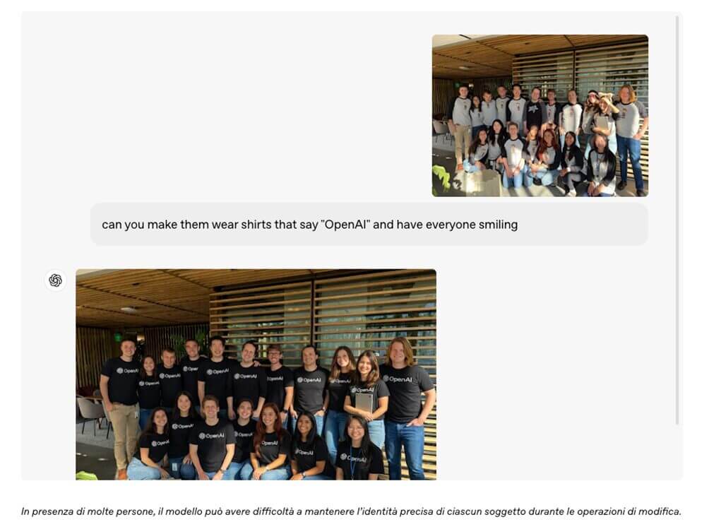 Anche la modifica di immagini che includono molte persone può portare a risultati inattesi, secondo quanto segnalato dalla stessa OpenAI.