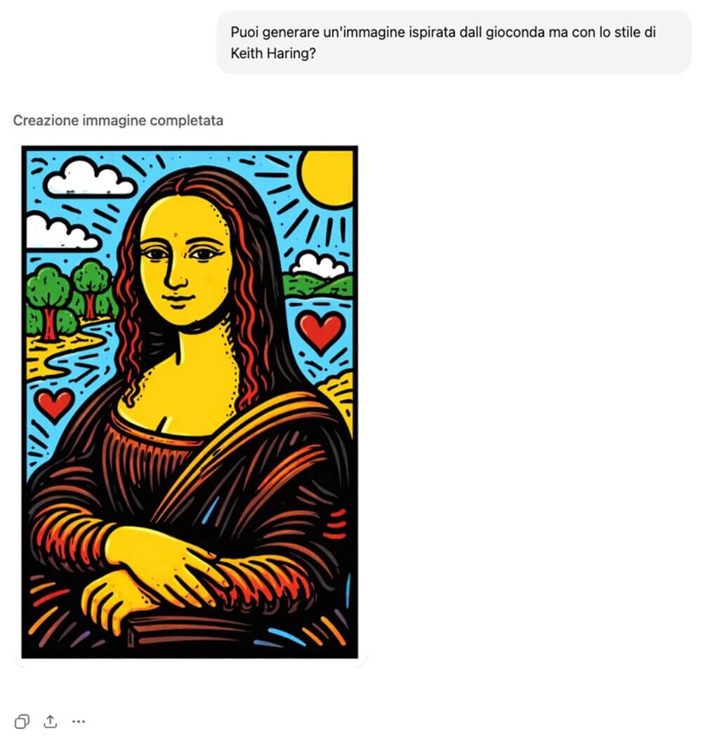 Anche la generazione di immagini artistiche è migliorata e, a quanto pare, le limitazioni sono state ridotte, consentendo di citare stili di artisti come Keith Haring.