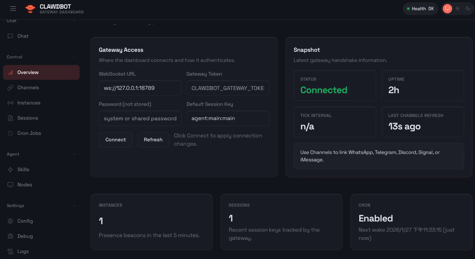 openclaw onboard(opzionale--install-daemon) scegli gateway locale o remoto, imposti l’autenticazione (OAuth o chiavi API), e configuri le basi del workspace e delle regole di pairing. - Verifica subito dalla dashboard: puoi lanciare