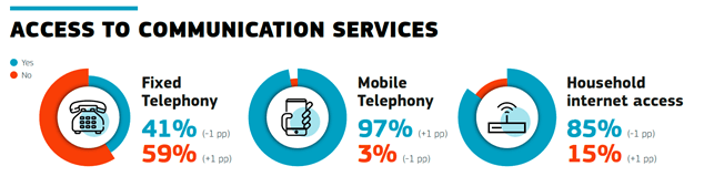 Non serviva certamente una survey per sapere che la quasi totalità dei cittadini europei possiede un telefono mobile, con una percentuale del 97%, compresa l’Italia. Se invece guardiamo alla connettività fissa sembrerebbero emergere differenze significative: mentre l’85% delle famiglie europee dispone di una connessione internet a casa, in Italia questa percentuale scende al 71%, un gap di quattordici punti percentuali che suggerirebbe un grave ritardo.
