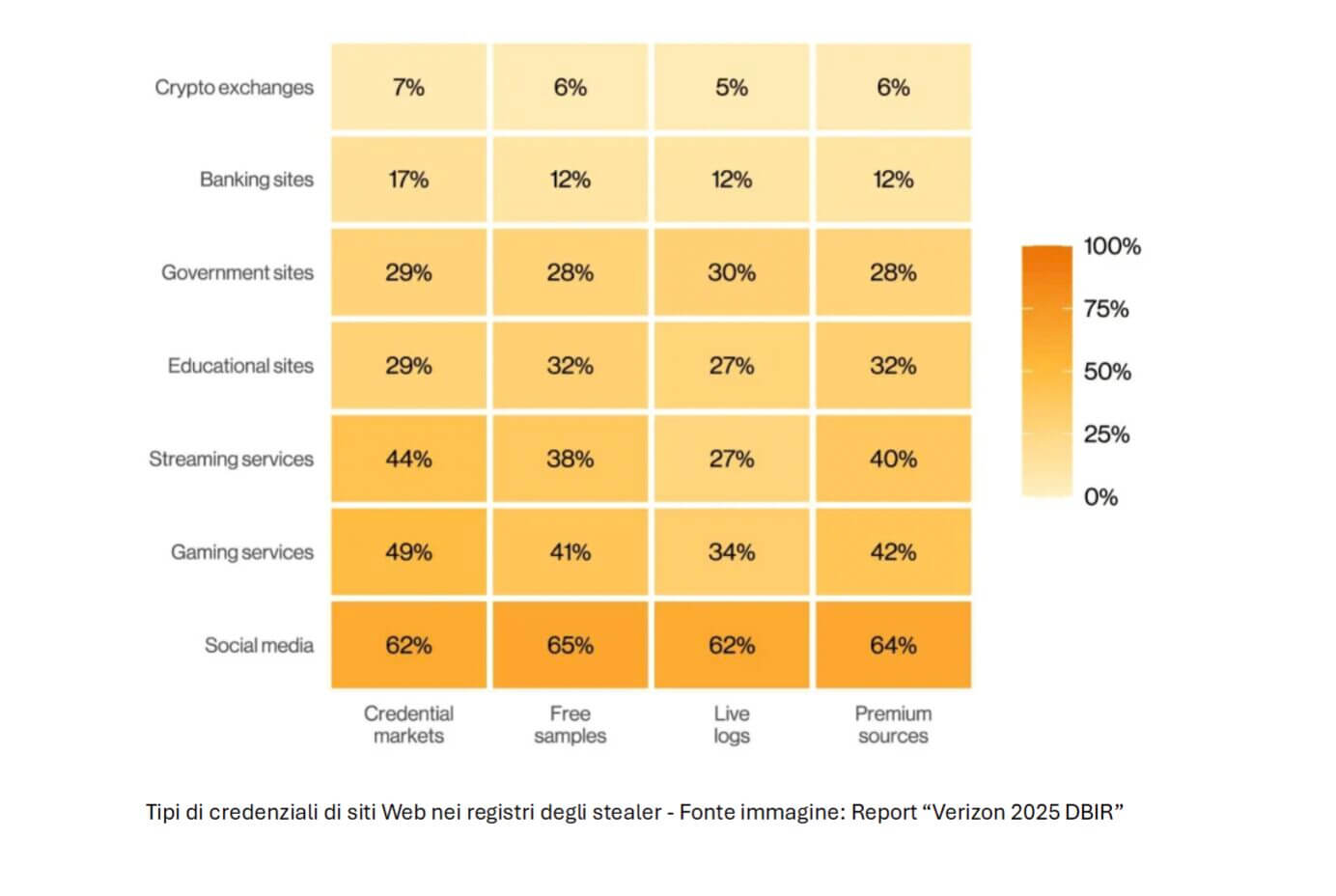 Il DBIR 2025 di Verizon mostra che il 54% delle vittime di ransomware aveva i propri domini nei stealer log, e il 40% includeva indirizzi email aziendali. Molti di questi log includevano credenziali di accesso a sistemi interni come GitHub, portali cloud o piattaforme di accesso remoto.