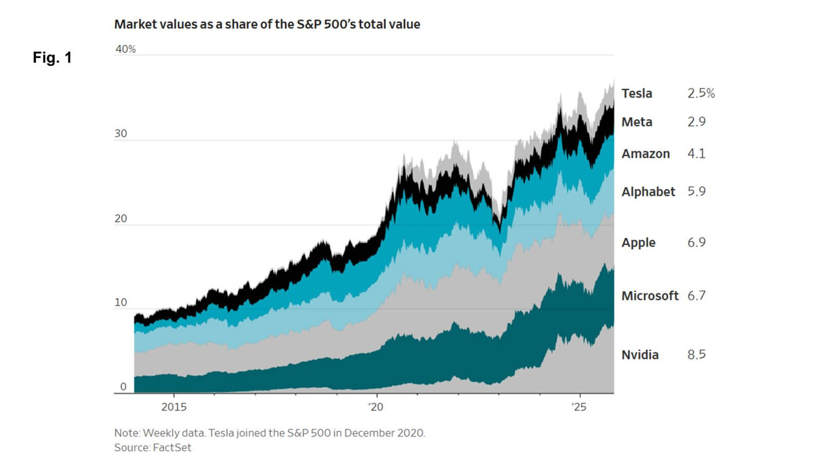 La Fig. 1 fornisce una rappresentazione grafica potente della crescita del peso delle MAG_7 nel giro degli ultimi dieci anni.