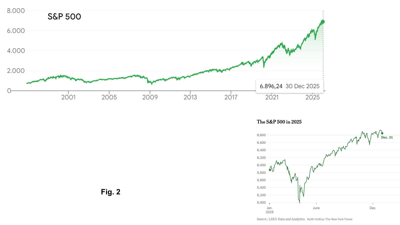 WSJ, nell’articolo del 30 dicembre “Wall Street Overcame This Year’s Slowdown Predictions – Trump’s tariff policies didn’t raise prices as much as feared, while an AI arms race powered growth—and the shares of the largest tech companies”, ha aggiornato questo dato al 40% con riferimento all’insieme delle MAG_7 e di Broadcom, ovvero a quelle che ho denominato MAG_8.
