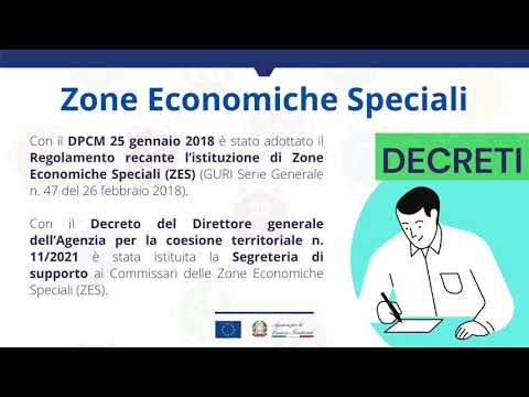Le Zone Economiche Speciali (ZES) sono aree geograficamente delimitate con incentivi specifici per le attività commerciali e produttive che prendono solitamente la forma di esenzioni fiscali, semplificazioni amministrative e disponibilità di infrastrutture.