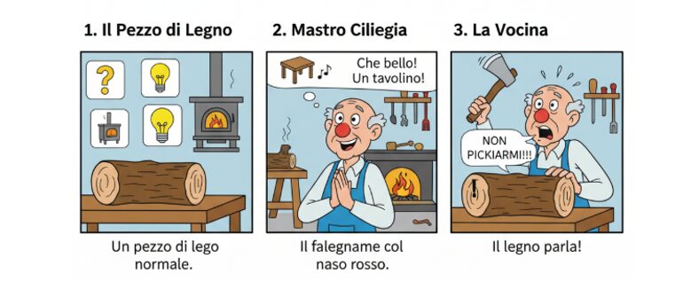 - Un giorno, il legno arrivò nella bottega di un falegname.