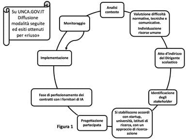 In figura 1 proponiamo lo schema di processo di innovazione tratto dalle indicazioni per introdurre IA nelle istituzioni scolastiche, per come l’abbiamo interpretata, a partire da quanto esposto nelle Linee guida.