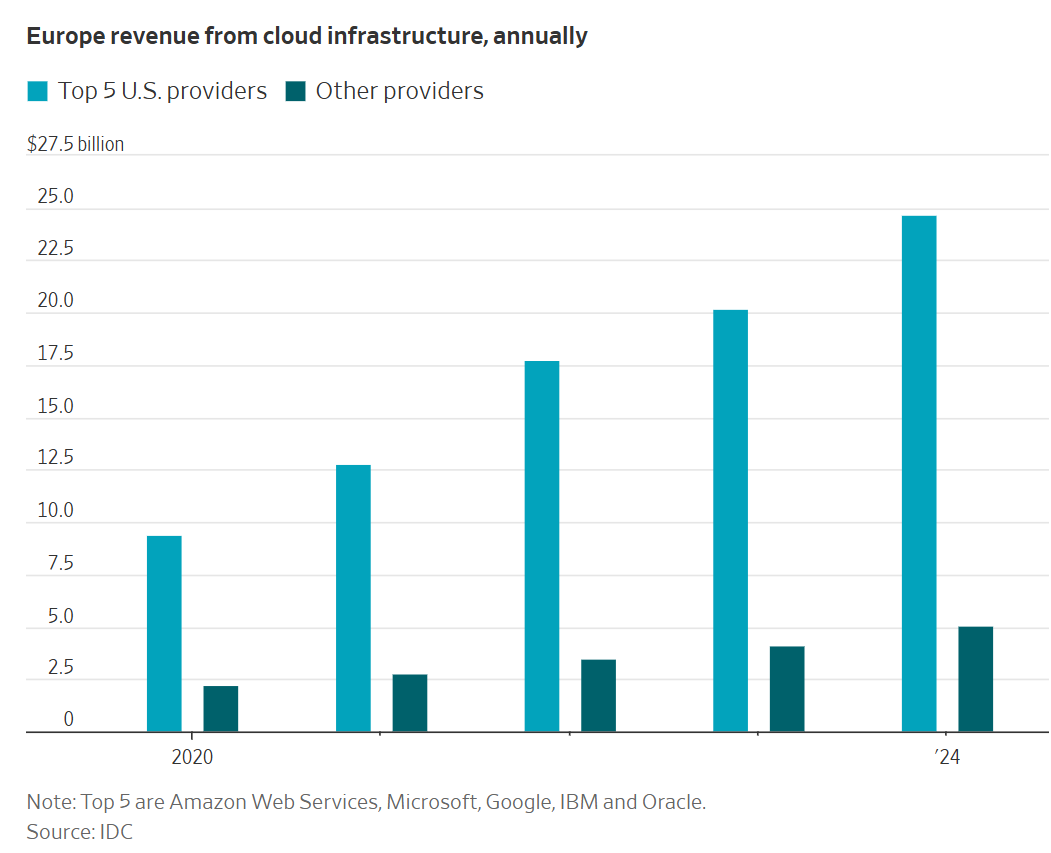 Al di là delle indiscrezioni raccolte dal Wall Street Journal, ci sono nuove evidenze di un’insofferenza dei leader europei nei confronti della dipendenza tecnologica dagli Stati Uniti. Qui non si tratta più solo di voci di corridoio di Bruxelles, ma di dichiarazioni pubbliche e fatti che segnalano che qualcosa si sta muovendo in Europa.