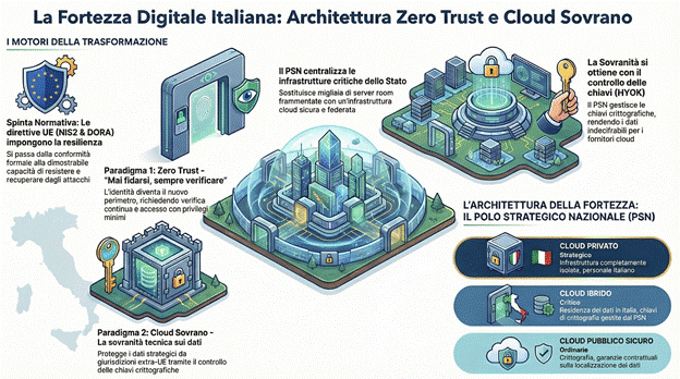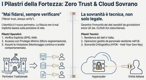 L’architettura zero trust nel cloud sovrano sta diventando la risposta più concreta alla digitalizzazione della PA e dei settori critici: quando i confini si fanno “eterei” e le minacce aumentano, la sicurezza non può più basarsi su un perimetro statico, ma su identità, verifica continua e controllo tecnico della sovranità dei dati.