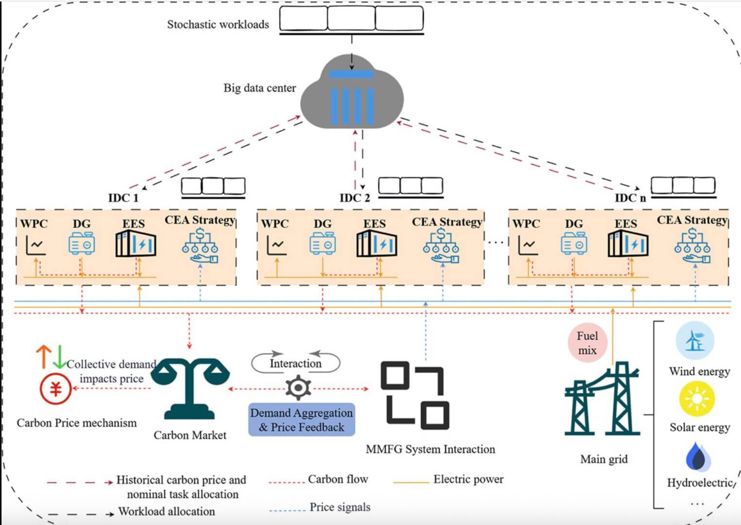 Nella seconda fase si costruisce un modello di gioco a campo medio multi-classe per cogliere le interazioni strategiche e l’eterogeneità comportamentale tra i data center Internet nei mercati del carbonio.