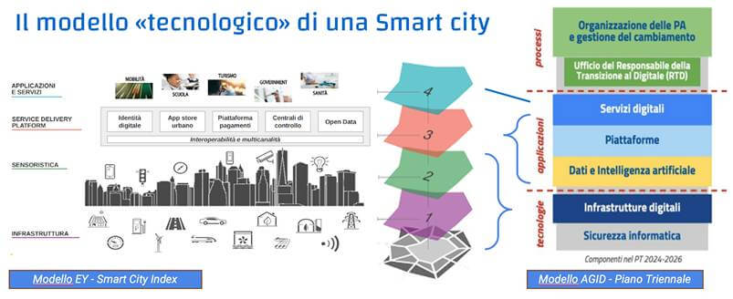Dal punto di vista prettamente tecnico, per gestire in modo organico progetti smart afferenti ad ambiti diversi e implementare servizi innovativi basati sui dati provenienti da sorgenti e infrastrutture eterogenee è necessario implementare un modello “a strati orizzontali”, come quello delineato da EY ancora nel 2014, con la predisposizione di un proprio «smart city Index».