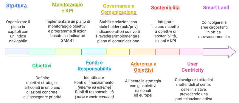 Per riuscire a lavorare in modo organico è quindi necessario predisporre una Strategia, che affermi la Vision del Comune e presenti una Struttura chiara, completa e, articolata in una serie di capitoli in cui riportare: