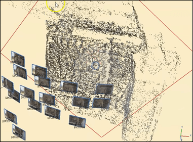 Nell’immagine si nota come il software, grazie alle coordinate note dei punti riconosciuti all’interno delle immagini, colloca i diversi punti nello spazio.